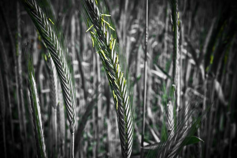 Keywords: cornfield grain cereals wheat nature field agriculture spike wheat field grain fields mature landscape harvest plant black and white close monochron black and white photo spring
