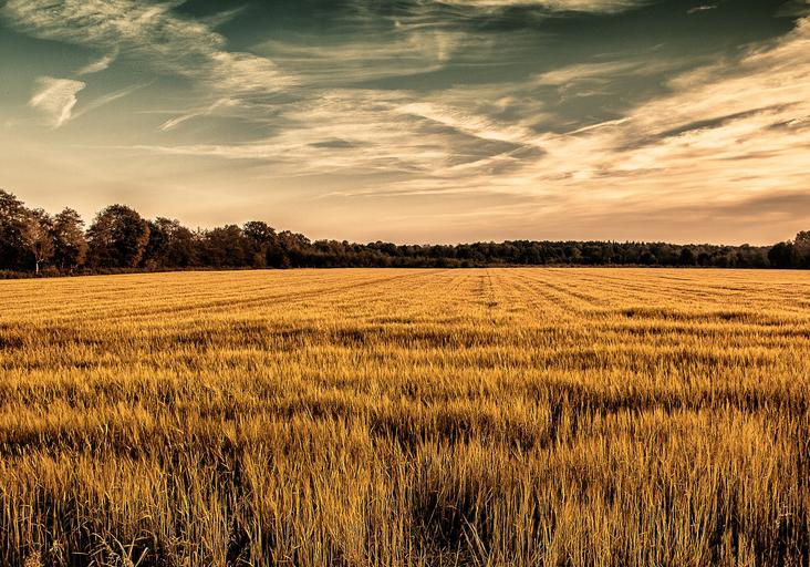 Keywords: cornfield sky yellow trees nature agriculture cereals landscape quiet orange spike