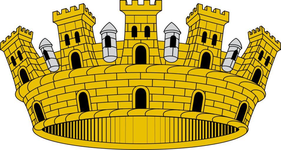 Keywords: Corona mural - ciudad.svg Corona mural de ciudad Lienzo de muralla con diez puertas cinco visibles realzado de ocho torres almenadas cinco visibles unidas hasta la mitad de su altura por un muro sin almenas con garitas de plata entre las torres http //www scgenealogia org/heraldica/heraldcivic htm Introducción general de heráldica cívica Own 2007-12-10 HansenBCN 40px SVG coat of arms elements - mural crowns |