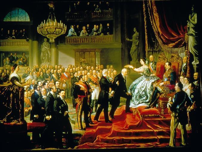 Keywords: Coronación de Don Manuel J. Quintana (Palacio del Senado de España).jpg El lienzo representa la coronación del poeta español Manuel José Quintana 1772-1857 por la reina Isabel II de España siendo celebrado dicho acto en el Palacio del Senado de España en 1855 1859 oil canvas Size cm 561 420 Institution Palacio del Senado de España http //www senado es/web/conocersenado/arteypatrimonio/obrapictorica/fondohistorico/index html object history exhibition history credit line accession number http //www senado es/web/conocersenado/arteypatrimonio/obrapictorica/fondohistorico/index html PD-old-100 Manuel José Quintana 19th-century paintings in the Palace of Senate of Spain Luis López y Piquer Uploaded with UploadWizard |