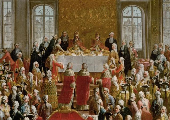 Keywords: Coronation Banquet of Joseph II in Frankfurt (detail).jpg School of Coronation Banquet for the Holy Roman Emperor Joseph II in Frankfurt 1764 de Krönungsmahl Josephs II in Frankfurt am Main > 1764 Oil on canvas Institution Schönbrunn Palace http //text habsburger net/module/die-oeffentliche-tafel-2013-ein-augenschmaus-fuer-die-menge/die-oeffentliche-tafel/MB-ST_R1-MOD6-04 jpg/ size preview plus 1 other versions <gallery>File Krönungsmahl Joseph II jpg</gallery> PD-old-100 Martin van Meytens Paintings in the Palace of Schönbrunn Coronation of Joseph II Holy Roman Emperor Paintings of Joseph II Holy Roman Emperor 18th-century oil on canvas paintings in Austria Paintings of banquets Coronation meals Details of paintings Haus zum Römer Paintings by Martin van Meytens with fur Ermine clothing in art |