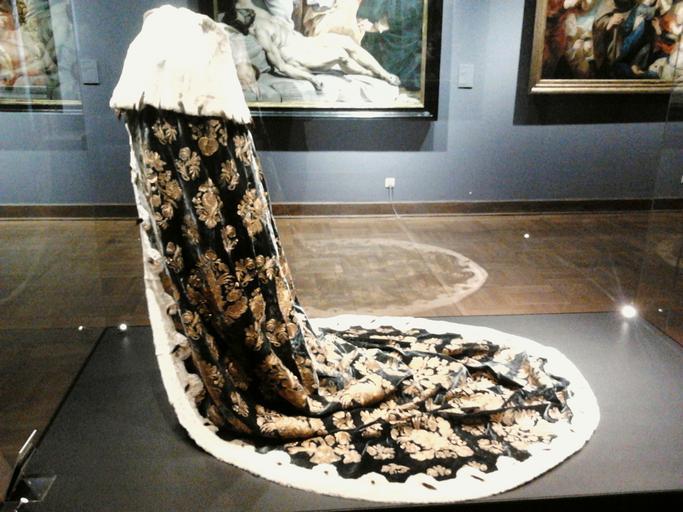 | Keywords: Coronation mantle of Augustus III 02.jpg Dresden ca 1734 ermine gold thread velvet cm 320 250 Institution National Museum Warsaw accession number SZT 3061 object history < 1734 commission Augustus III Dresden ProvenanceEvent 1734 transfer Wawel Kraków > 1734 bequest Grünes Gewölbe Dresden ProvenanceEvent 1924 gift Frederick Augustus III of Saxony Government of Saxony ProvenanceEvent 1924 purchase Szymon Szwarc Vienna ProvenanceEvent 1925 purchase National Museum Warsaw credit line Jacek Staszewski Werner Schmidt 1997 Pod jedną koroną kultura i sztuka w czasach unii polsko-saskiej Zamek Królewski w Warszawie p 110 own See below PD-old-100 DEFAULTSORT 1734 circa; Coronation mantle of Augustus III Coronation mantle of Augustus III |
