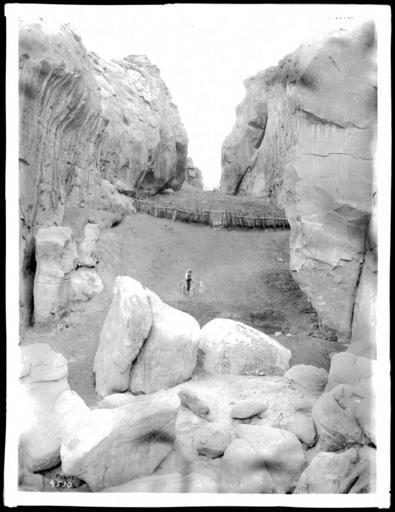 Keywords: Corral between the rock walls near the Acoma Pueblo, 1886 (CHS-4530).jpg en <br> Corral between the rock walls near the Acoma Pueblo 1886 Photograph of a rough stick and branch corral fence constructed between the tall rock walls near the Acoma Pueblo 1886 The gate in the corral fence is open Boulders litter the foreground A man on a horse stands just below the corral on the sloped flat area between the rocky walls Call number CHS-4530 Photographer James George Wharton Filename CHS-4530 Coverage date 1886 Part of collection California Historical Society Collection 1860-1960 Type images Part of subcollection Title Insurance and Trust and C C Pierce Photography Collection 1860-1960 Repository name USC Libraries Special Collections Accession number 4530 Microfiche number 1-160-30 Archival file chs_Volume96/CHS-4530 tiff Repository address Doheny Memorial Library Los Angeles CA 90089-0189 Geographic subject country USA Format aacr2 4 photographs transparency photonegative photoprints b w ; 20 x 25 cm 5 x 4 in Rights Digitally reproduced by the USC Digital Library; From the California Historical Society Collection at the University of Southern California Subject adlf natural rock formations Project USC Repository email specol usc edu Identifying number unidentified no James-884 Contributing entity California Historical Society Date created 1886 Publisher of the digital version University of Southern California Libraries Format aat transparencies; negatives photographic ; photographic prints; photographs Geographic subject state New Mexico Legacy record ID chs-m16865; USC-1-1-1-13461 Access conditions Send requests to address or e-mail given Phone 213 821-2366; fax 213 740-2343 Subject file heading Indians -- Acoma Subject lcsh Indians of North America; Acoma Indians Subject Acoma Indians; Acoma Indians; Acoma 1886 date created George Wharton James 1858 1923 http //digitallibrary usc edu/cdm/ref/collection/p15799coll65/id/16787 PD-old-70-1923 Images from USC Digital Library uploaded by Fæ Photographs by George Wharton James California Historical Society Collection 1860-1960 Acoma Pueblo |