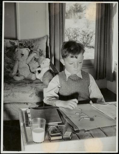 Keywords: archives state records nsw staterecordsnsw newsouthwales blackandwhite school distance education distanceeducation children toys people black and white Title: Correspondence School - From the Commonwealth Film Unit production School in the Mailbox Directed by Stanley Hawes. A boy fortified by a glass of milk and supported by his teddy bears and football successfully completes a button and match stick man as a exercise for his State Correspondence School teacher. Dated: c.1946 Digital ID: 15051_a047_003379 Series: NRS 15051 School Photograph Collection Rights: No known copyright restrictions www.records.nsw.gov.au/about-us/rights-and-permissions We'd love to hear from you if you use our photos/documents. Many other photos in our collection are available to view and browse on our website using Photo Investigator. Title: Correspondence School - From the Commonwealth Film Unit production School in the Mailbox Directed by Stanley Hawes. A boy fortified by a glass of milk and supported by his teddy bears and football successfully completes a button and match stick man as a exercise for his State Correspondence School teacher. Dated: c.1946 Digital ID: 15051_a047_003379 Series: NRS 15051 School Photograph Collection Rights: No known copyright restrictions www.records.nsw.gov.au/about-us/rights-and-permissions We'd love to hear from you if you use our photos/documents. Many other photos in our collection are available to view and browse on our website using Photo Investigator. |