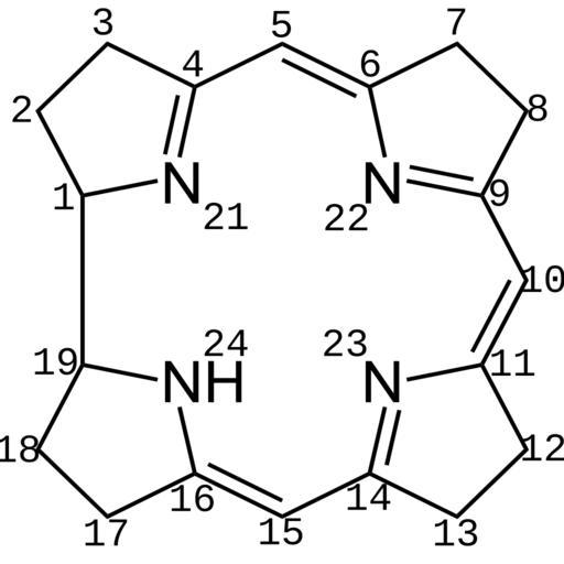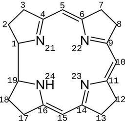 Keywords: Corrin-IUPAC.svg de Struktur von Corrin;<br />en Structure of corrin I've added ring numbering to the structure according to 1975 IUPAC standard See http //www chem qmul ac uk/iupac/misc/B12 html r1 Note that there is no position 20 - to match porphyrins positions 20-23 from very early literature were incremented to 21-24 See for example Dorothy Crowfoot Hodgkin Proceedings of the Royal Society of London Series A Mathematical and Physical Sciences Vol 288 No 1414 Nov 16 1965 pp 294-305 http //www jstor org/pss/2415001 Corrin svg 2009-11-10 02 24 UTC Corrin svg NEUROtiker derivative work Mike Serfas <span class signature-talk >talk</span> subst LOCALMONTHABBREV subst LOCALYEAR ~~~ Own work al</nowiki> Uploaded with derivativeFX Tetrapyrroles