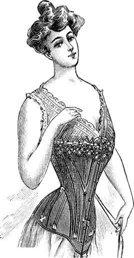 Keywords: Corset droit devant en lasting de laine.gif De 46 à 76 Corset droit devant en lasting de laine noir ou satin fil mastic doublé véritable baleine 10 50 Même genre corne 1<sup>er</sup> choix jarretelles simili 8 50 Grands Magasins de la Samaritaine PD-old Line art of women in straight fronted corsets Fashion in 1905 |