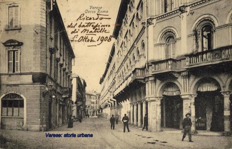 Keywords: varese corso roma corsoroma corso aldo moro corsoaldomoro road architecture outdoor building Sul lato sinistro il ristorante Orologio con alloggio con l'insegna (prima versione) ben visibile, sul fondo si intravede la piazza Porcari. Il lato destro presenta la lunga cortina di edifici progettati dall'ing. Paolo Cantù (1889). Sul lato sinistro il ristorante Orologio con alloggio con l'insegna (prima versione) ben visibile, sul fondo si intravede la piazza Porcari. Il lato destro presenta la lunga cortina di edifici progettati dall'ing. Paolo Cantù (1889).