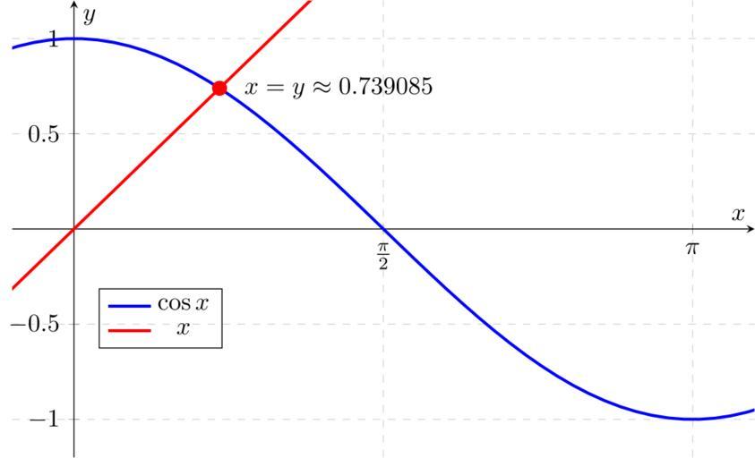 Keywords: Cos-fixpoint.svg en Visualization of the fixpoint <math>x</math> of the cosine function <math>x \cos x \approx 0 739085</math> de Visualisierung des Fixpunktes <math>x</math> der Kosinus-Funktion <math>x \cos x \approx 0 739085</math> own MartinThoma 2015-11-07 ValidSVG Source is available at https //github com/MartinThoma/LaTeX-examples/ github Cosine function TikZ diagrams Images by Martin Thoma/Mathematics Cc-zero |