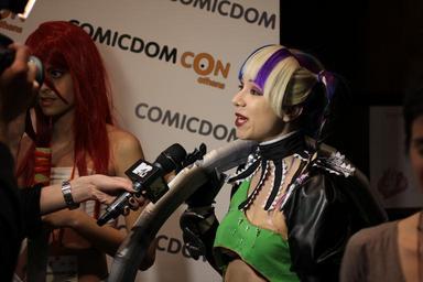 | Keywords: Cosplay at Comicdom 2012 in Athens, Greece 32.JPG en Cosplayer Sofia Koutsouveli also known as Sofia Lucifairy winner of Comicdom 2011 cosplay competition wearing a self-made costume representing the Tira character from Soulcalibur V grants an interview to journalists from the MTV television channel and also poses for other the photojournalists' cameras at Comicdom 2012 an annual cosplay competition held at Hellenic American Union in Kolonaki Athens Greece Photo donated to the public domain free of copyright restrictions Journalistic use For Journalistic use 2012-03-31 18 15 10 own Cogiati cc-zero consent public place Interviews with cosplayers at Comicdom 2012 Cosplay of Tira Soulcalibur Green clothing female Taken with Canon EOS 60D Taken with Canon EF 50mm F2 5 Compact Macro |