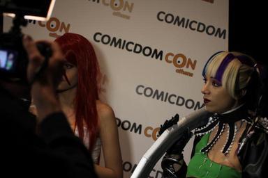 | Keywords: Cosplay at Comicdom 2012 in Athens, Greece 35.JPG en A cosplayer wearing a self-made costume representing the Tira character from Soulcalibur V grants an interview to journalists from the MTV television channel and also poses for other the photojournalists' cameras at Comicdom 2012 an annual cosplay competition held at Hellenic American Union in Kolonaki Athens Greece Photo donated to the public domain free of copyright restrictions Journalistic use For Journalistic use 2012-03-31 18 15 15 own Cogiati cc-zero consent public place Canon EF 50mm f/2 5 Compact Macro Canon EOS 60D Cosplay of Tira Soulcalibur Uploaded with UploadWizard Green clothing female Cosplay at Comicdom 2012 Cosplay in Greece Taken with Canon EOS 60D |