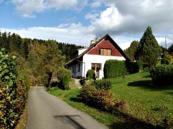 Keywords: cottage house recreation spring beauty the green trees small house road street mountains forest green