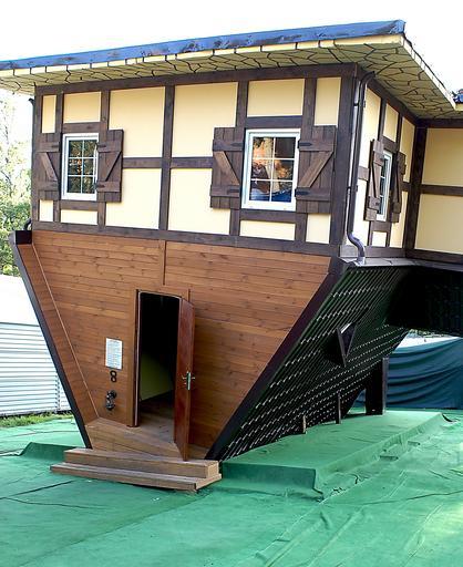 Keywords: cottage upside-down house architecture a joke inverted house small building the window the door wooden cottage the inverse of the the roof of the style wooden construction half-timbered construction regional construction