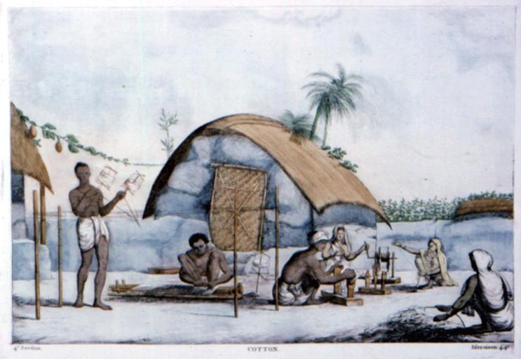 Keywords: Cotton and textile handicraft village in 1790s India.png artwork is preserved The complete etchings collections of François Balthazar Solvyns a Flemish artist include musical instruments festivals social events and people classified by different occupations religion and class The collections include a self portrait where Solvyns is with his servants In this etching is shown the handicraft cotton and textile occupation in 1790s in India A man to the left has spindles for cotton thread while another is making frabric To the right is a family spooling harvested cotton The property is shown to have a raised boundary http //laits utexas edu/solvyns-project/solvynsonline/pages/Paris274 html 2012-04-06 Creator Balthazar Solvyns etching PD-old-100 Uploaded with UploadWizard Frans Balthazar Solvyns Original upload log wikitable - - 2012-04-07 02 18 19 653 × 450 201050 bytes Lisa davis <nowiki></nowiki> |