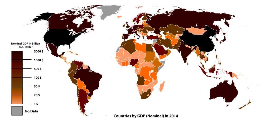 Keywords: Countries by GDP (Nominal) in 2014.svg en Countries by GDP Nominal in 2014 based on data from the http //databank worldbank org/data/download/GDP pdf World Bank 2015-09-19 own ; Used a blank map from https //upload wikimedia org/wikipedia/commons/0/03/BlankMap-World6 svg here <strong><span style font-family Hobo Std; font-size 13 6px; text-shadow Silver 0 1em 0 1em 0 08em;class texhtml ><font color 088A08 >Ali Zifan</font></span></strong> other versions cc-zero Uploaded with UploadWizard |