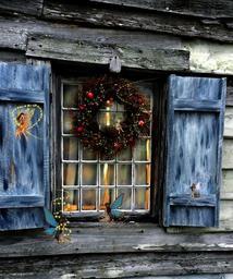 Keywords: country christmas magic wreath blue shutters window fairy fairies holiday xmas decoration red pine wooden season december seasonal warm merry celebration traditional wood