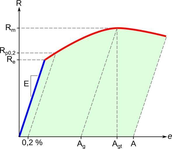 Keywords: Courbe traction conventionnelle ductile.svg en Conventional stress-strain curve for a ductile material fr Courbe de traction conventionnelle pour un matériau ductile 2012-10-03 11 44 16 own from File Courbe contrainte vs deformation png Modifications SVG copy; σ †’ R ε †’ e; +A<sub>gt</sub> Cdang inkscape cdang cc-zero Uploaded with UploadWizard Stress-strain curves |