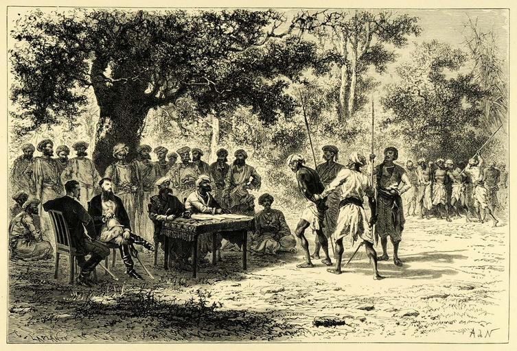| Keywords: Courtscene1878.jpg Forthwith all my servants in great excitement set about searching in the neighbourhood of the camp; and after an hour's hunting they brought me back the box broken open by blows from a pickaxe and bereft of its contents This was a heavy loss to me Besides a valuable watch and a thousand rupees in silver it contained a very fine collection of diamonds and jewels presented to me by various rajahs; and moreover bills of exchange on the bankers at Bhopal for a very large amount I found myself completely plundered I sent word in haste to the Bhopal magistrate of the district who arrived the same day at Sanchi with a strong escort of scribes and gendarmes His first act was to put the chowkeydars in irons and to seize all the population of the two hamlets men women and children These unfortunate people were all penned into an enclosure of stakes and cords to await their examination The next day an express sent from Bhopal informed me that the Government of the Begum declared itself responsible for the crime and would indemnify me for my losses A judge from the capital came to preside at the court The villagers were examined one after another but denied all participation in the robbery At last a poor child eight years old frightened at the terrible whip of the sepoys pointed out four of our chowkeydars as the guilty parties These wretched men when brought before the tribunal allowed themselves to be lacerated by the whip rather than confess; nevertheless the proofs were overwhelming One of them had been placed by me at the very spot where the thief had effected an entrance into the tent by cutting the canvas with his knife while another had been seen by one of my servants during the night on the spot where the strong box had been found; but nothing could wrest a confession from him Some days afterwards the bills of-exchange of the value of which the thieves were ignorant were found near the village; and the Begum's Government indemnified me for my loss but nothing could replace for me the memorials to which I attached so great a value 1879 http //www columbia edu/itc/mealac/pritchett/00routesdata/1800_1899/women/bhopalbegams/bhopalbegams html author PD-Art Uploaded with UploadWizard Bhopal State 1723 “1949 |