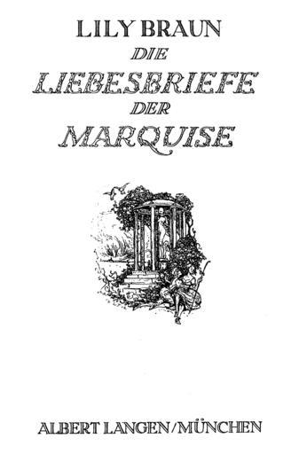 Keywords: Cover Die Liebesbriefe der Marquise (Braun).jpg Book Cover of the book Die Liebesbriefe der Marquise 1912 Lily Braun PD-old Lily Braun Illustrated title pages from Germany Love letters