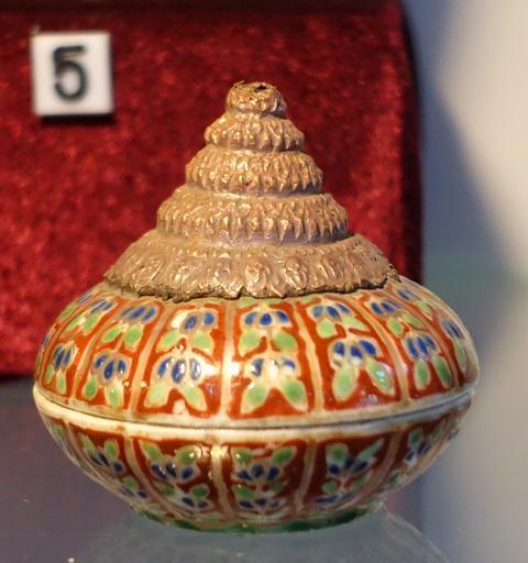 | Keywords: Covered jar from Thailand, 19th century AD, stoneware - found in Hon Dam, Kien Giang province in 1991 - Museum of Vietnamese History - Ho Chi Minh City - DSC05878.JPG en Exhibit in the Museum of Vietnamese History Ho Chi Minh City Vietnam This work is old enough so that it is in the public domain Photography was permitted in the museum without restriction 2014-08-07 02 57 52 own Daderot other versions cc-zero Uploaded with UploadWizard Ceramics of Thailand in the Museum of Vietnamese History |