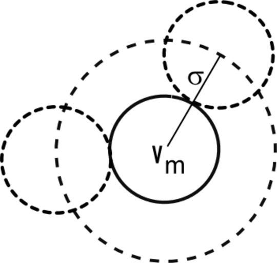 Keywords: Covolume.png en gas molecule with 2 neighbouring molecules own Livinus 2010-12-13 Van der Waals equation