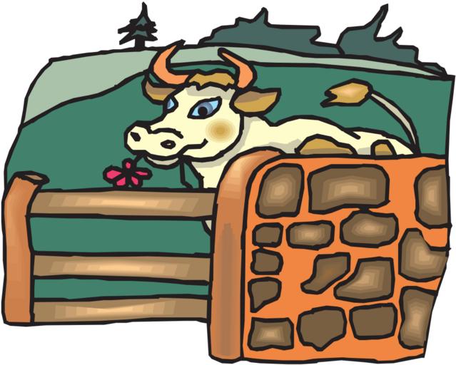 Keywords: cow fence grazing graze cartoon farm animal pasture beef dairy milk mammal