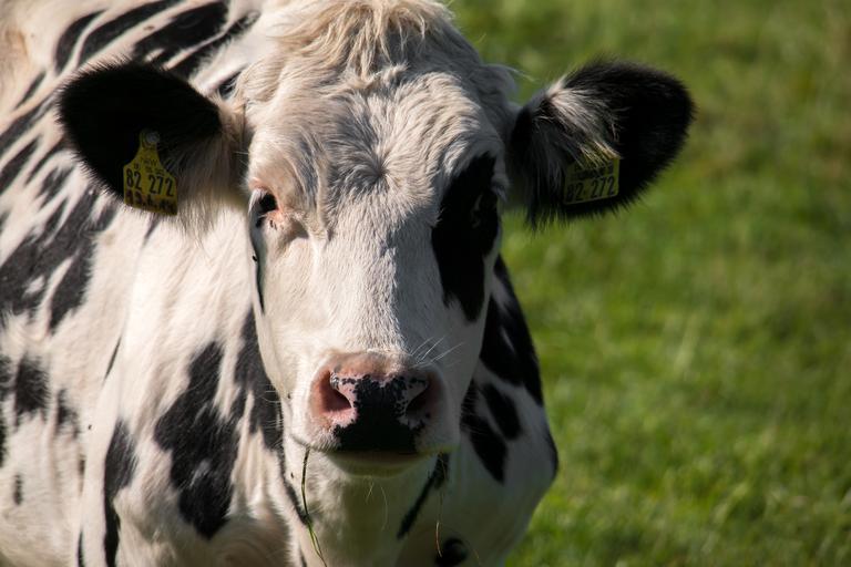 Keywords: cow meadow pasture head cow head stains livestock cattle calf beef ruminant milk graze fur grass animal portrait