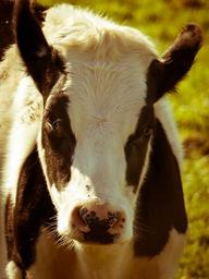 Keywords: cow meadow pasture head cow head stains livestock cattle calf beef ruminant milk graze fur grass animal portrait