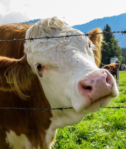Keywords: cow pasture barbed wire curiosity beef close alm fence wire