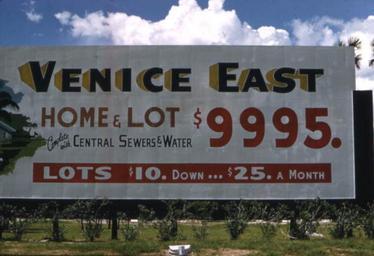 | Keywords: florida state library and archives of florida statelibraryandarchivesofflorida signs billboards advertisements land sales landsales development real estate realestate construction homes cowan construction company cowanconstructioncompany venice east veniceeast planned communities plannedcommunities sarasota county sarasotacounty 1960s joseph janney steinmetz collection josephjanneysteinmetzcollection text sign signboard outdoor architecture building Local call number: JJS1646 Title: Cowan Construction Company billboard: Venice East, Florida Date: July 1961 Physical descrip: 1 slide - col. Series Title: Joseph Janney Steinmetz Collection Repository: State Library and Archives of Florida, 500 S. Bronough St., Tallahassee, FL 32399-0250 USA. Contact: 850.245.6700. Archives@dos.myflorida.com Persistent URL: floridamemory.com/items/show/252398 Local call number: JJS1646 Title: Cowan Construction Company billboard: Venice East, Florida Date: July 1961 Physical descrip: 1 slide - col. Series Title: Joseph Janney Steinmetz Collection Repository: State Library and Archives of Florida, 500 S. Bronough St., Tallahassee, FL 32399-0250 USA. Contact: 850.245.6700. Archives@dos.myflorida.com Persistent URL: floridamemory.com/items/show/252398 |