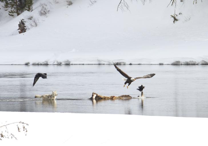 Keywords: carcass coyote raven yellowstone national park yellowstonenationalpark yellowstone river yellowstoneriver outdoor Coyote approaching bison carcass in Yellowstone River scaring off bald eagle and ravens; Jim Peaco; March 3, 2016 Catalog #20536d; Original #IMG_1232 Coyote approaching bison carcass in Yellowstone River scaring off bald eagle and ravens; Jim Peaco; March 3, 2016 Catalog #20536d; Original #IMG_1232 |