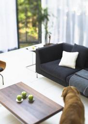 Keywords: room dog modern interior home sofa carpet garden window plant decor design bright pillow relax couch outdoor decoration chair table floor flowers white lamp seat living balcony recreation wood living-room furniture