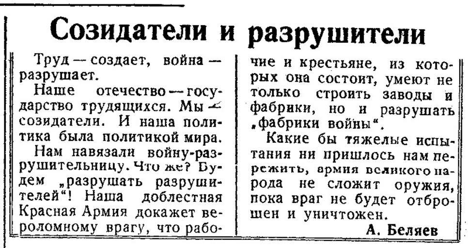 Keywords: Creators and destroyers.jpg ru А Беляев Созидатели и аз ушители // газета «Большевистское слово» 26 июня 1941 own scan A Belyaev 1941-06-26 PD-Art Alexander Belayev