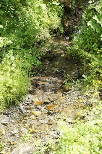 Keywords: creek nature bach water landscape idyll flow splash movement green plant stones