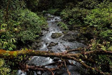 Keywords: creek stream water brook flow fresh clear cool rocks stones pristine nature forest outdoor environment wet wild lush vibrant jungle vegetation green plants tree trunk fallen