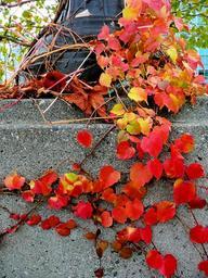 Keywords: creeping plant nature concrete lantern pole colorful nature red