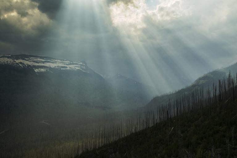 Keywords: crepuscular rays sunlight nature sunshine mountains valley clouds light shaft rays hills landscape scenic