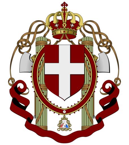Keywords: crest crown church gentry power coloms banner red white gold lions head angel pigeon maria eternity grand