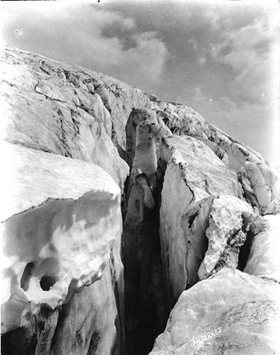 Keywords: Crevasse in Stevens Glacier, Mount Rainier National Park, Washington, ca 1913 (BAR 190).jpeg Photograph Creator Albert Henry Barnes On sleeve of negative Stevens Glacier Crevasse Subjects LCTGM Glaciers--Washington State --Mount Rainier National Park Subjects LCSH Glacial crevasses--Washington State --Mount Rainier National Park; Stevens Glacier Wash ; Mount Rainier National Park Wash depicted place Mount Rainier ca 1913 Silver gelatin b/w Institution University of Washington UWASH-AHBarnes-source accession number 190 PD-old-auto-1923 1920 Information field Order Number BAR216 Images from the Albert Henry Barnes Collection to check Glaciers of the United States Mount Rainier |