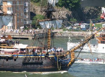 Keywords: Crew of Gotheborg waving.jpg The crew of East Indiaman Götheborg waving at welcoming spectators at Lindholmen when coming home from China The steamer Bohuslän and one of the Paddan tourist boats are also seen Own 2007-06-09 Rolf Broberg Göteborg harbour Götheborg ship 2002 |