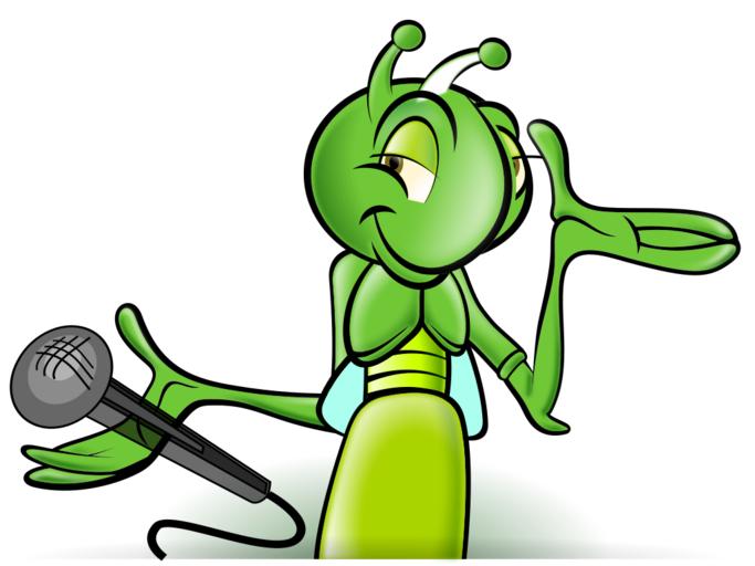 Keywords: cricket microphone cartoon insect comic green talk show journalist interview