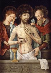 Keywords: Cristo paciente con San Juan Evangelista y Nicodemo (Museo de Bellas Artes de Valencia).jpg La obra representa a Jesucristo coronado de espinas y acompañado por San Juan Evangelista y por Nicodemo Segunda década del siglo XVI oil on panel Size cm 49 69 Institution Museo de Bellas Artes de Valencia http //www cult gva es/mbav/data/es06066 htm accession number 293 http //www cult gva es/mbav/data/0293 jpg PD-old-100 Paintings of Jesus Christ being crowned with thorns in Spain 16th-century paintings of Jesus Christ being crowned with thorns Paintings of Saint John the Evangelist in Spain 16th-century paintings of Saint John the Evangelist Paintings of Nicodemus Paintings by Vicente Masip in the Museu de Belles Arts de València 16th-century paintings in the Museu de Belles Arts de València 1520s paintings from Spain |