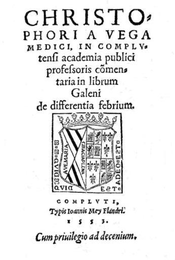 Keywords: Cristóbal de Vega (1553) Comentaria in librum Galeni de differentia febrium.png Cristóbal de Vega en Alcalá de Henares en 1553 1553 http //alfama sim ucm es/dioscorides/consulta_libro asp ref X533697254 idioma 0 Christophori a Vega Comentaria in librum Galeni de differentia febrium Compluti typis Ioannis Mey Flandri; 1553 Cristóbal de Vega PD-old PD-old-100 16th-century books 1553 in Spain Cristóbal de Vega Medical books from Spain Books published in Alcalá de Henares University of Alcalá History of Alcalá de Henares Frontispieces from Spain Books in Latin Files by User Raimundo Pastor portadas |
