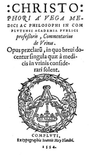 Keywords: Cristóbal de Vega (1554) Commentarius de vrinis.png Cristóbal de Vega en Alcalá de Henares en 1554 1554 http //alfama sim ucm es/dioscorides/consulta_libro asp ref X53254957X idioma 0 Christophori a' Vega Commentarius de vrinis Compluti ex typographia Ioannis Mey Flandri; 1554 Cristóbal de Vega PD-old PD-old-100 1554 books 16th-century books Spain in the 1550s Cristóbal de Vega Medical books from Spain Books published in Alcalá de Henares University of Alcalá History of Alcalá de Henares Frontispieces from Spain Books in Latin Files by User Raimundo Pastor portadas |