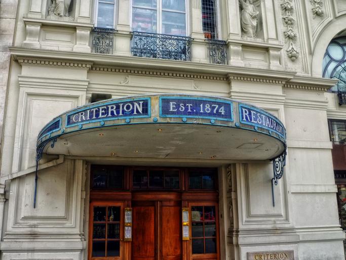 Keywords: criterion restaurant sign building facade landmark historic london england great britain hdr