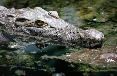 Keywords: crocodile alligator reptile zoo animal tooth green scale dangerous risk animal portrait water seaweed