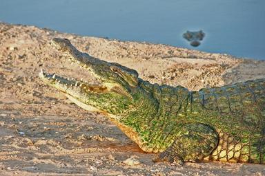 Keywords: crocodile reptile wildlife nature predator wild danger teeth skin tropical carnivore eye jaws tail sunning