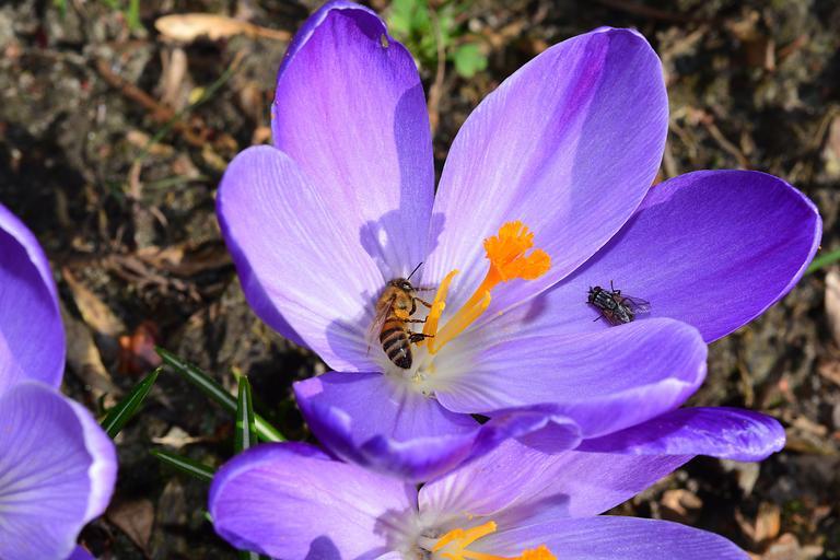 Keywords: crocus flower blossom bloom close bee frühlingsanfang pollination