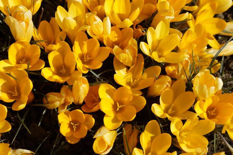 Keywords: crocus garden end of winter early bloomer spring yellow plant flower nature blossom bloom spring crocus harbinger of spring frühlingsanfang springtime spring flower mass quantitative many beautiful frühlingsblüher bloom bright
