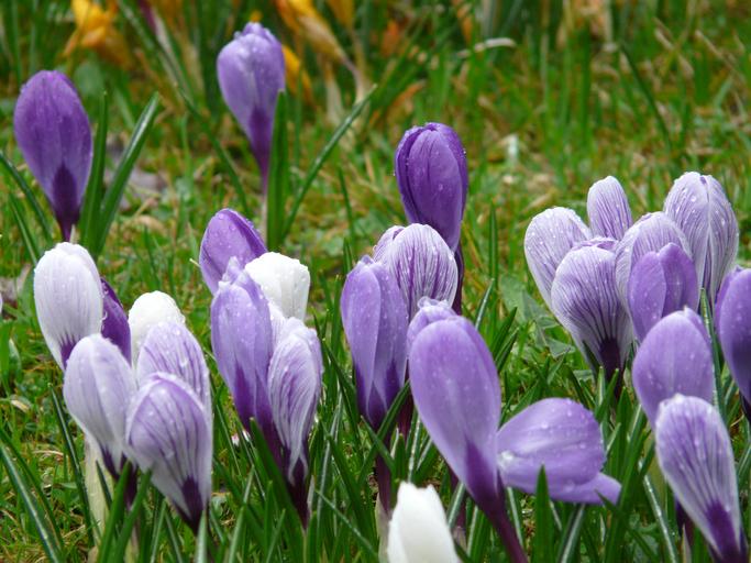 Keywords: crocus schwertliliengewaechs flower garden rain wet purple raindrop water