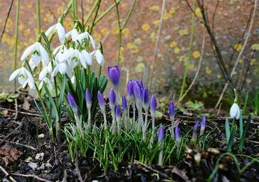 Keywords: crocus snowdrop flowers spring nature bloom plant close green flower fullness signs of spring sweet blue white garden beauty contrast beautiful spring awakening romantic